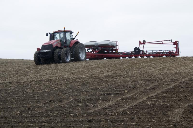 Near Alexander, Iowa, on a cloudy spring Tuesday, Josh Nelson watches a bright red Case IH Magnum tractor pull a 24-row planter and crest a small hill, dropping corn seed at careful intervals. Nelson says his family farm dodged a weather bullet this week, but it’s just one of many hurdles this season promises.