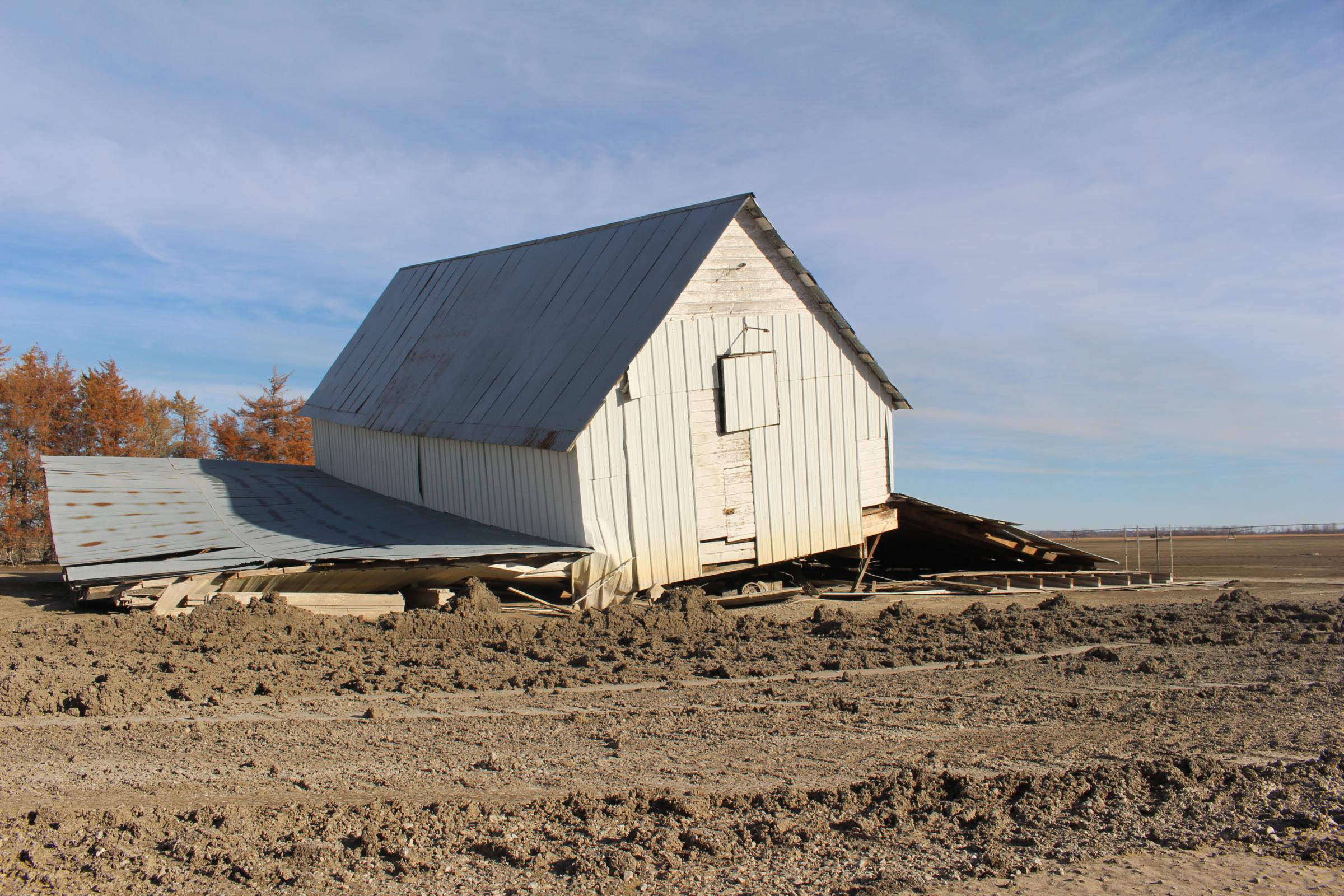 We drove past the soaked and stubbly remains of 2018’s crop, and tools—once assumed lost—caked in the mud. After a few minutes, we reached the blown out levee that once kept the Missouri River away from his parents' house.