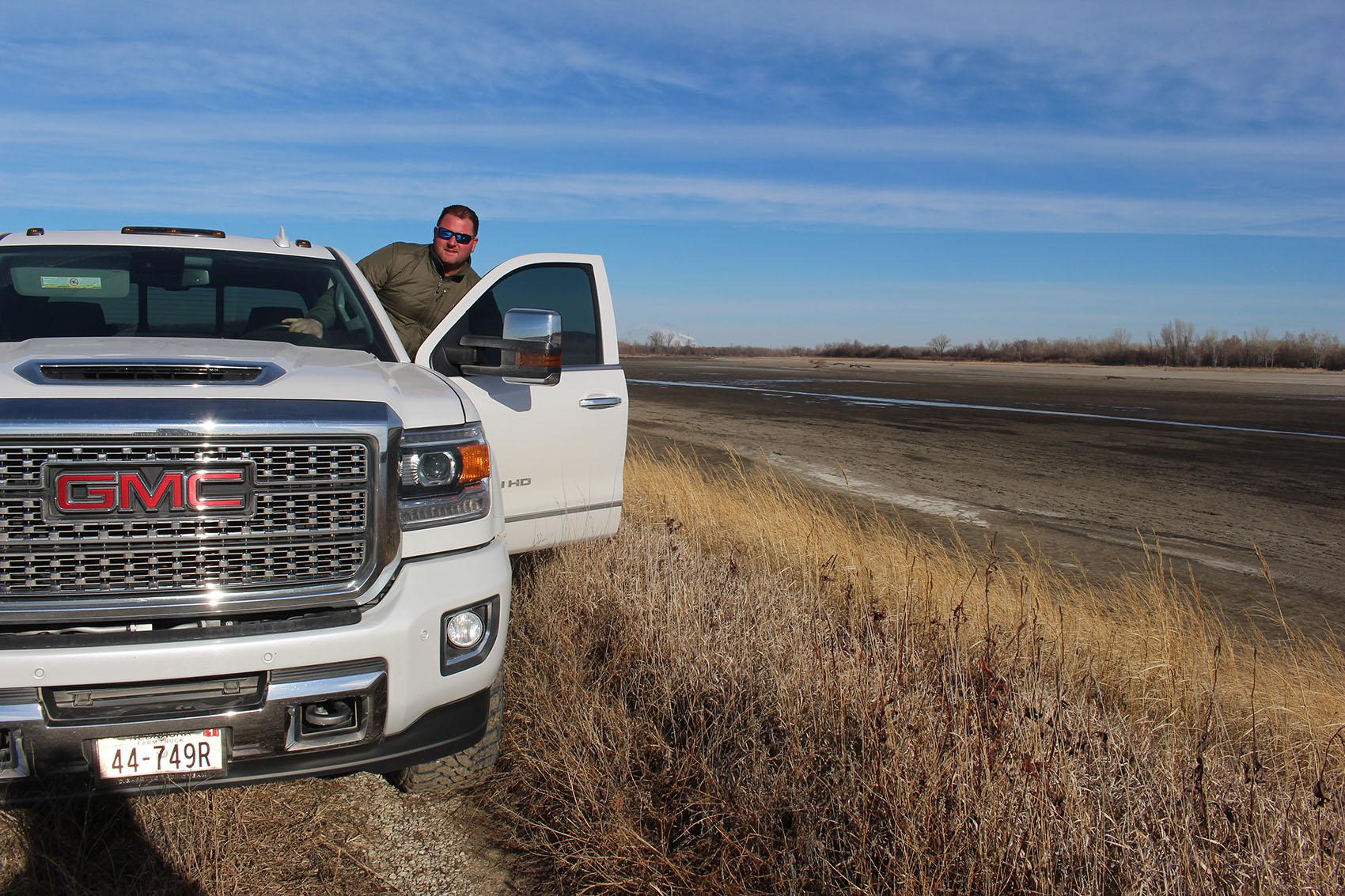 Adams is on the local levee board, which manages the town’s nearly 8 miles of Missouri riverbed. And the (unpaid) work keeps him very busy: he was on a call when I first climbed into his pickup, apologetically holding a finger up every so often.